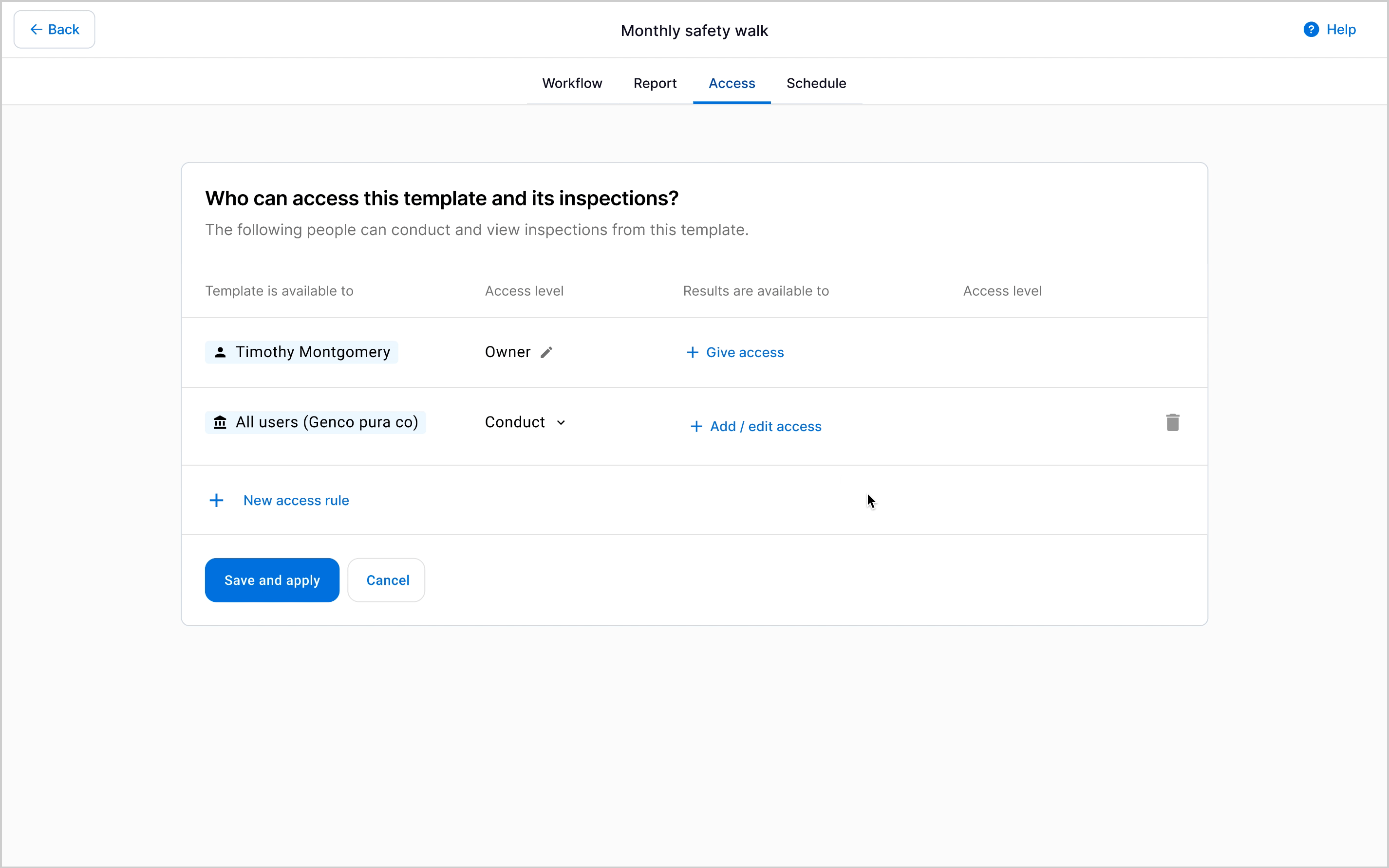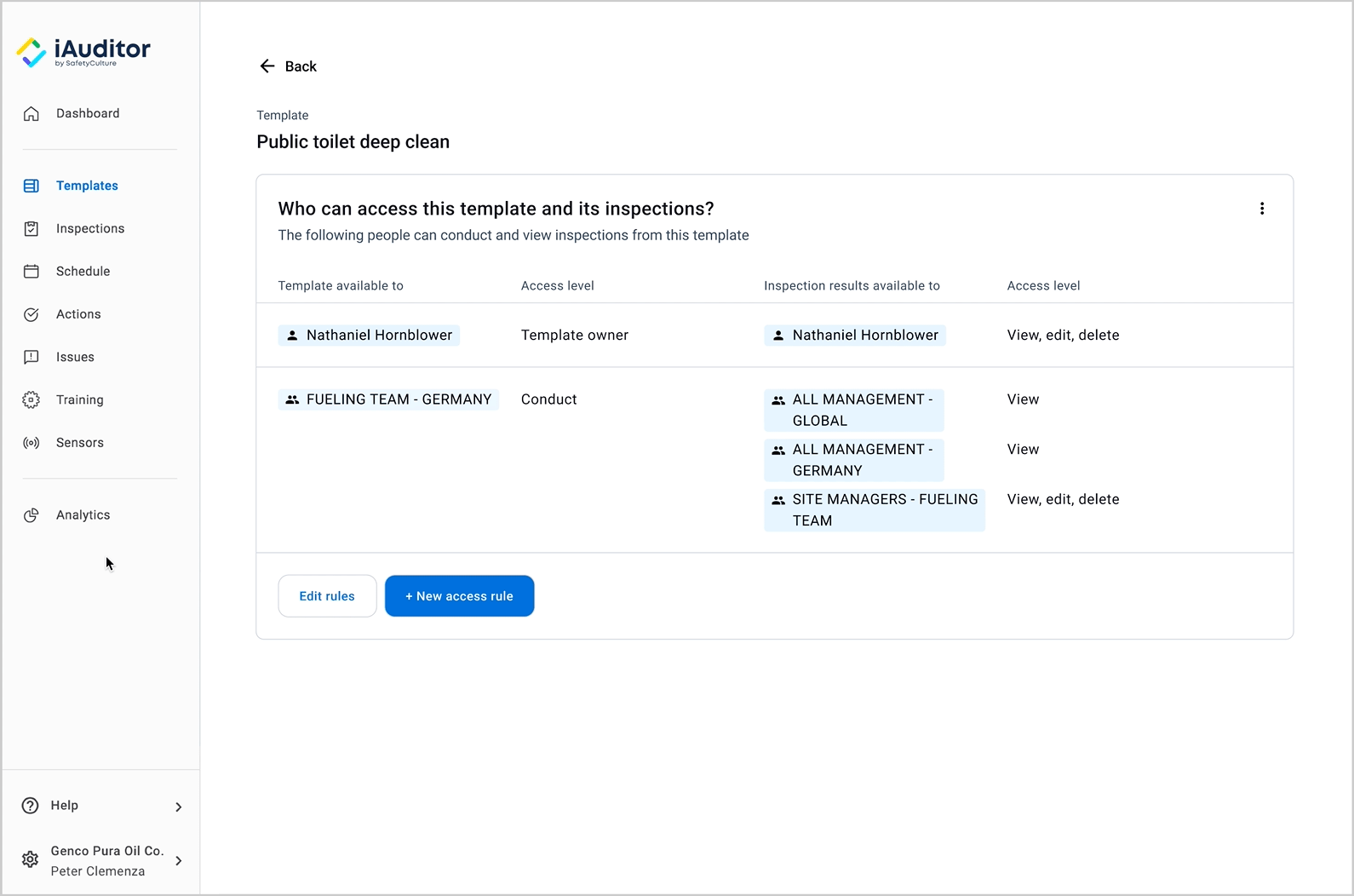 We re-designed the way users managed access to inspection templates to make it easier to use, and to build the foundations for dynamic sharing rules in the future.